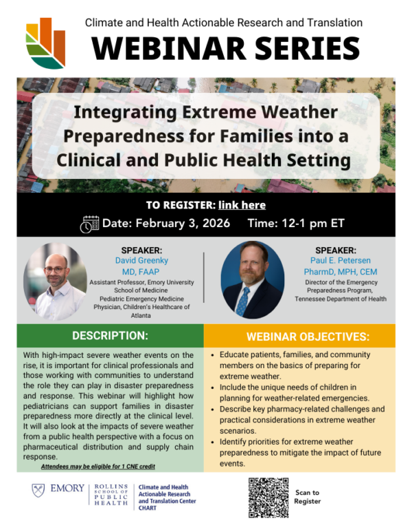 CHART Webinar Series – Integrating Extreme Weather Preparedness for Families into a Clinical and Public Health Setting